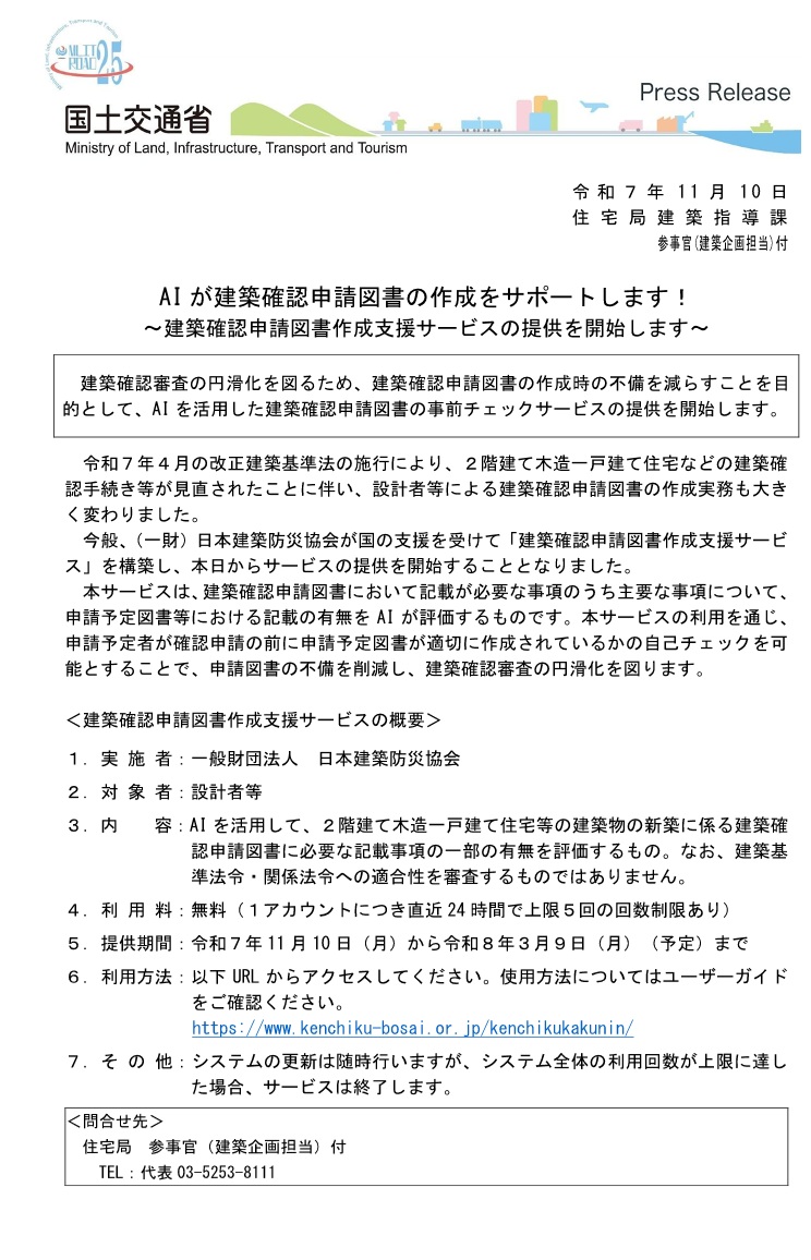 AIが建築確認申請図書の作成をサポートします!(国土交通省からのお知らせ)